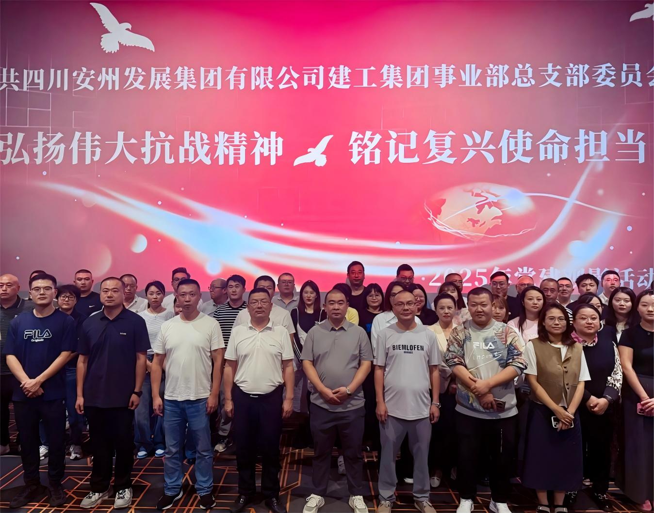 为深入学习贯彻习近平总书记在纪念中国人民抗日战争暨世界反法西斯战争胜利80周年大会上的重要讲话精神,弘扬爱国主义传统,传承红色基因,凝聚奋进力量,9月25日,四川安发展建工集团事业部党总支组织全体党员、入党积极分子及群众代表共61人,开展“弘扬伟大抗战精神,铭记复兴使命担当”主题党建观影活动。