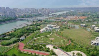 作品简介:俯瞰河东湿地公园,树木成荫,郁郁葱葱;园内设施齐全,安州再添休闲度假好去处。