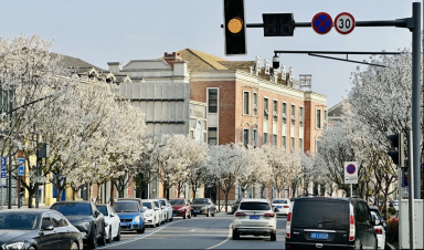 安州区滨河路起于益昌路东段,止于银河大道东段,全长1495米,道路宽20米。该道路于2020年底全面完成改造提升,建成后一直是市民朋友散步休闲的好去处。道路两旁种植的染井吉野樱花树型姿态优美,树冠完整,与沿线各功能地块总体景观统一和谐,樱花盛开之际,吸引众多市民驻足欣赏、拍照留念。