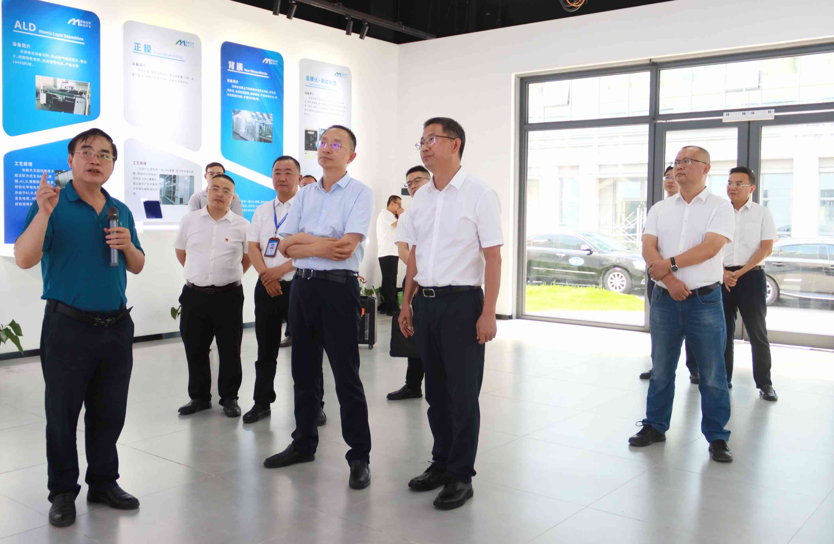 莫怀学一行来到高效单晶太阳能电池智能制造工厂项目现场,实地查看了项目推进情况,详细了解了生产流程、科技创新和投产运营等情况,并听取了相关情况汇报。