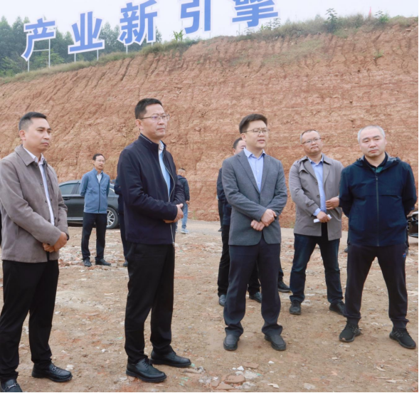 胡斌一行来到光伏产业园配套基础设施建设项目现场,通过查看展板、听取汇报的方式,详细了解项目建设进展,并针对项目建设过程中存在的问题提出了意见和建议。