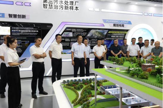 胡斌一行先后来到水资源循环利用研究中心、集团本部,实地参观了智慧水务展厅、数字化管理系统展示墙,观摩了再生水处理工艺流程,听取了再生水利用现状、全区水质研发、技术中心创建、数字化系统开发运行及下一步智慧水务建设规划等相关情况汇报。