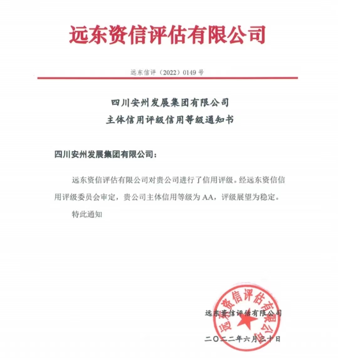 6月30日,威廉体育经远东资信评估有限公司综合评定,成功取得AA主体信用评级。在国有企业现代化改革发展中,以新时代国企担当为党的101岁华诞献礼。