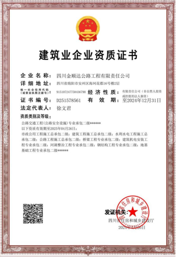 经资质升级,四川金顺达公路工程有限责任公司业务领域将得以拓展,具备承揽规模更大、要求更高的工程项目的能力,有利于提升行业声誉和品牌影响力。凭借更高级别的资质,公司可积极参与更具竞争力的工程项目,进一步巩固并提升在建筑业领域的市场地位。