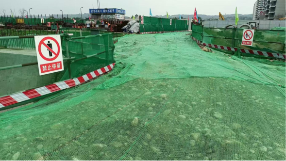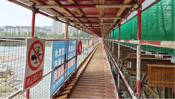 走进调元大桥施工现场,一幅幅安全文明施工的画卷映入眼帘:围挡外侧绿意盎然,环境整洁;工地内部材料堆放井然,施工便道早晚冲洗,保持清爽;进出车辆必经三级清洗,彻底“净身”而出;办公区、生活区、施工区界限分明,秩序井然;建筑工人身着统一制服,操作规范,尽显专业风范。