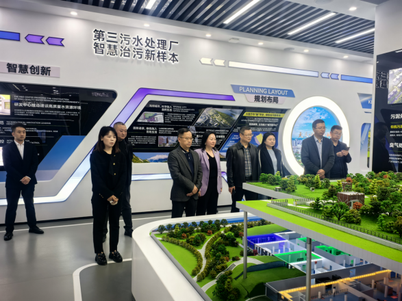 随后,刘飘一行前往第三污水处理厂和水资源循环利用研究中心进行参观,并与负责人展开深入交流。刘飘对第三污水处理厂智慧治污成效给予了高度评价,表示半埋式设计理念巧妙地将设备置于地上,而污水处理过程在地下进行,这一创新设计不仅有效利用了有限的空间和土地资源,更有利于优化生态环境,减少了对周边环境的影响,展现了企业在环保方面的社会责任感和技术创新能力。