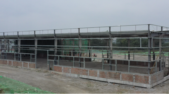 走进河清镇蔬菜初加工中心建设现场,工人们正在有条不紊地进行水电以及消防喷淋等安装工作。目前,河清蔬菜初加工中心已完成土方回填及主体建设,附属设施工程也正在建设当中。