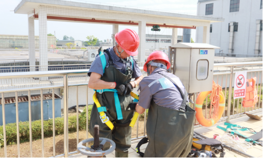 为进一步加强有限空间作业安全管理,提升应对有限空间作业突发事故的能力,切实保障员工生命安全与区域生态环境安全,4月27日,集团公司在凯江污水处理厂开展有限空间作业事故应急演练。集团副总经理侯涛、安全环保部总经理杨燕现场观摩指导,水务集团事业部副总经理朱治翰、总工程师何文光参加演练。