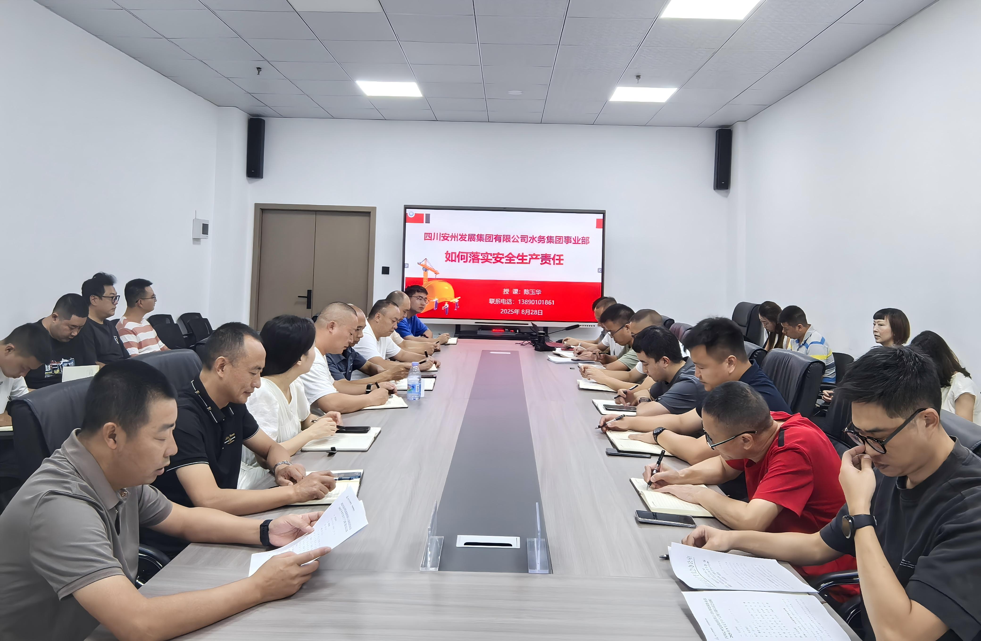 为进一步筑牢安全生产防线,强化事业部消防安全意识,提升应急处置能力,8月28日,安发展水务集团事业部邀请绵阳市应急管理专家陈玉华进行安全专题培训。事业部组长级以上管理人员参加培训。