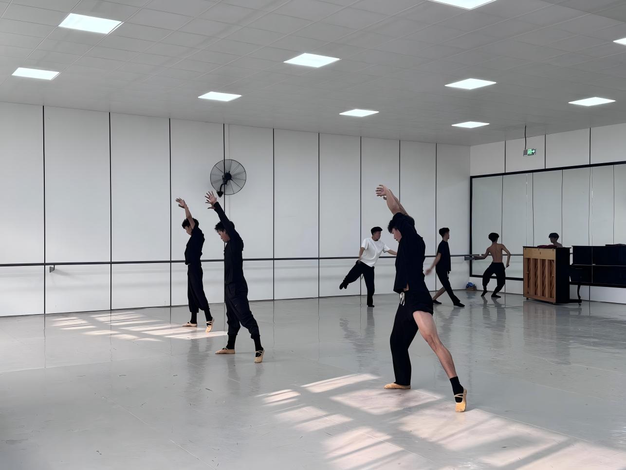 (学生在厂房改造的舞蹈室练习)